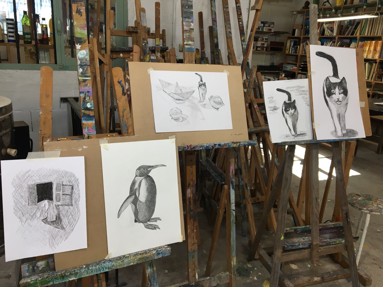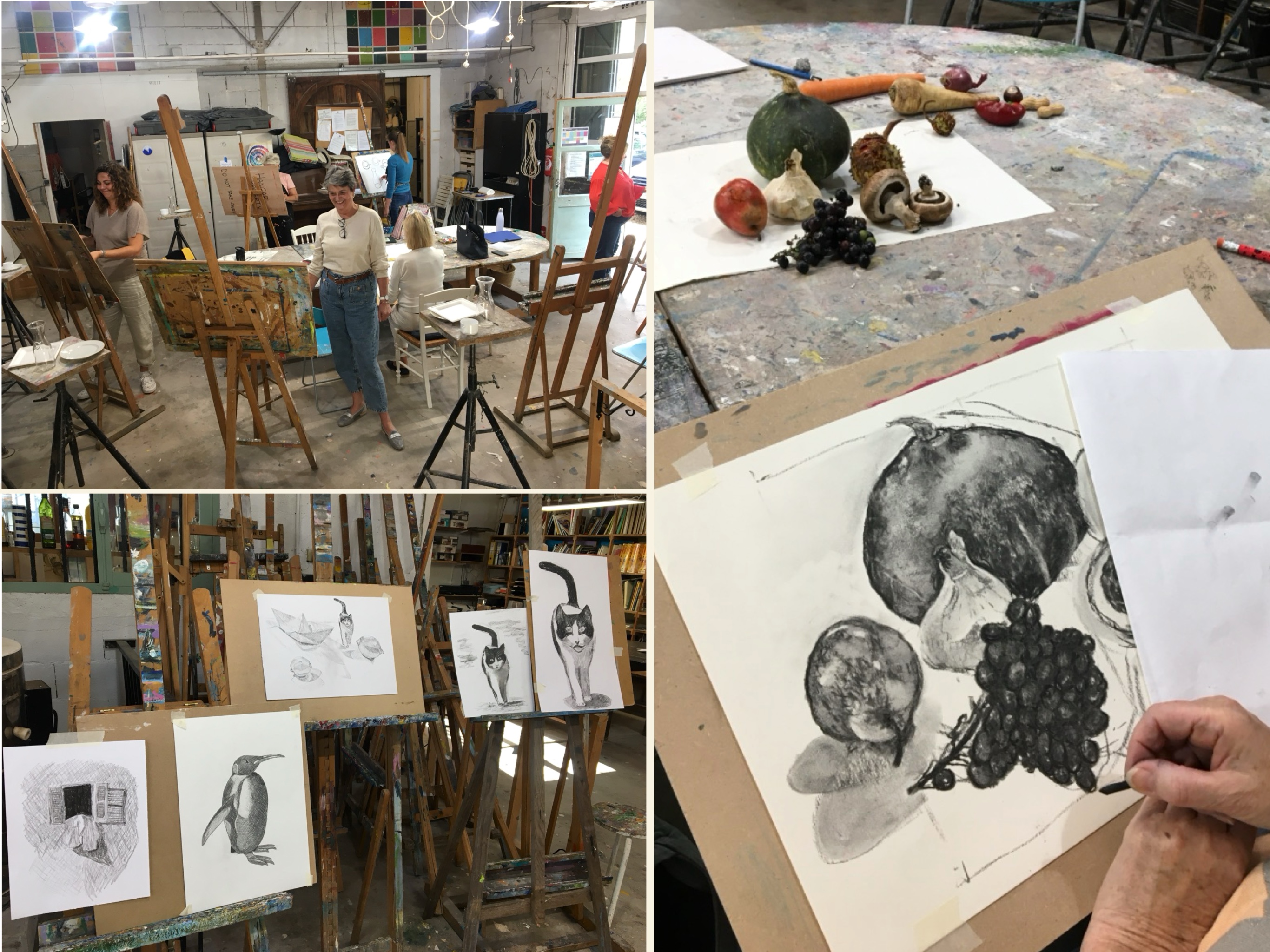 In the second session, we continued with charcoal, exploring the themes of perspective and volume. It was pretty amazing to discover the Hangar space from the perspective point of view !